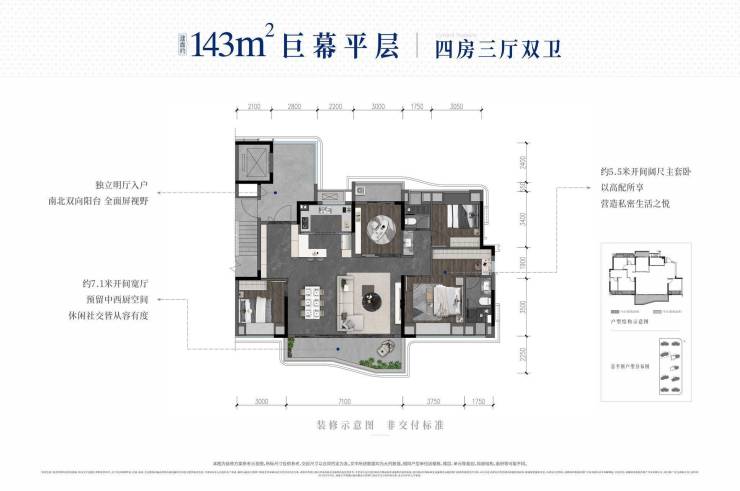 【产品面积】建面约143㎡四室两厅两卫、建面约187㎡四室两厅三卫