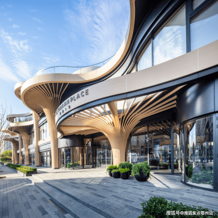 南北外立面采用了铝板、石材和大面积玻璃的组合,实现了社区的“无死角颜值”。