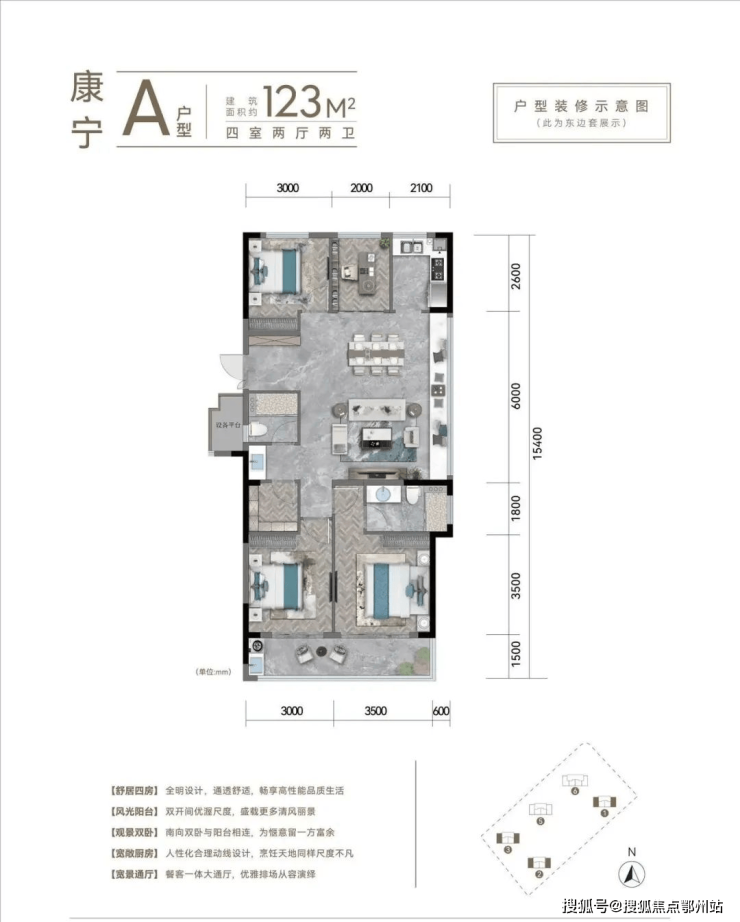 建面约123-135㎡宽境四房