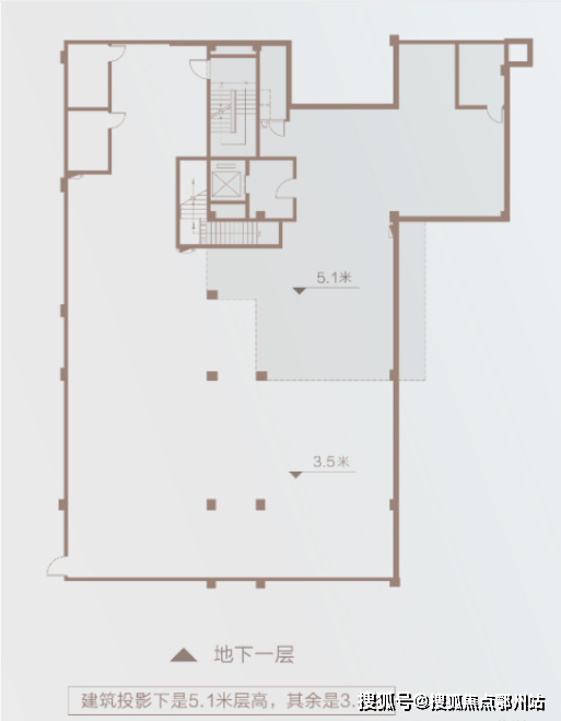地下社交:层高约5.1m、局部约3.5m,可作企业康养乐活空间