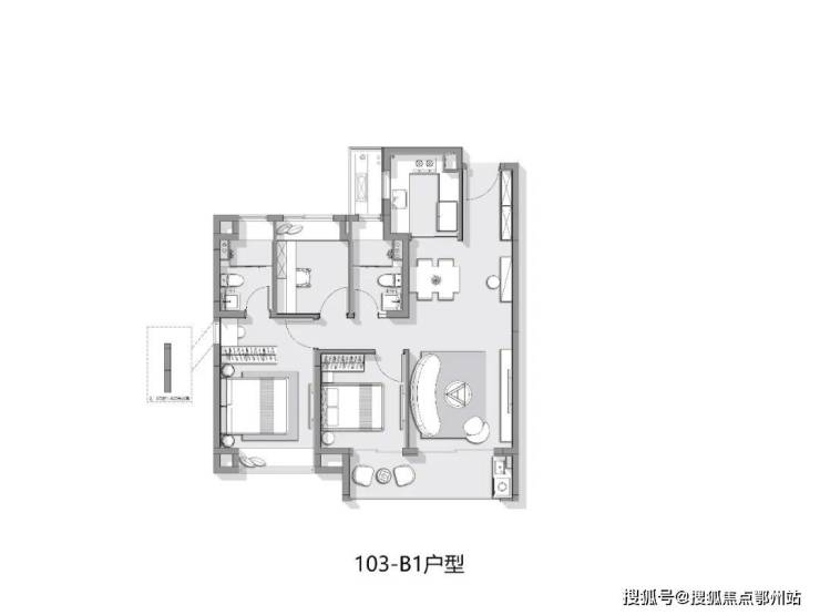 主力约103㎡3房2卫,经典LDKB餐客厨阳一体化贯通中轴的设计,极力减少过道、转角等空间浪费,撑起气场的同时,也提升了户型的实用性、家庭成员的互动性和场景感。