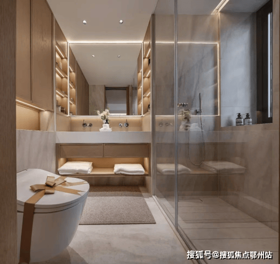 主卫采用TOTO(或同等品牌)挂壁式智能马桶,水龙头、花洒全部采用德国当代(或同等品牌),号称“卫浴届的劳斯莱斯”;