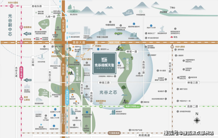 光谷中心城属于东湖高新技术开发区,整个板块都是先规划后建设,所以目前不是很繁华,但是整个产住规划比较合理,产业聚集,商业集中,市政配套也在高新大道一条线上,板块内有如华为、小米等独角兽企业,被公认为武汉发展潜力最好的区域。该项目位于光谷中心城千亿大道高新大道旁。