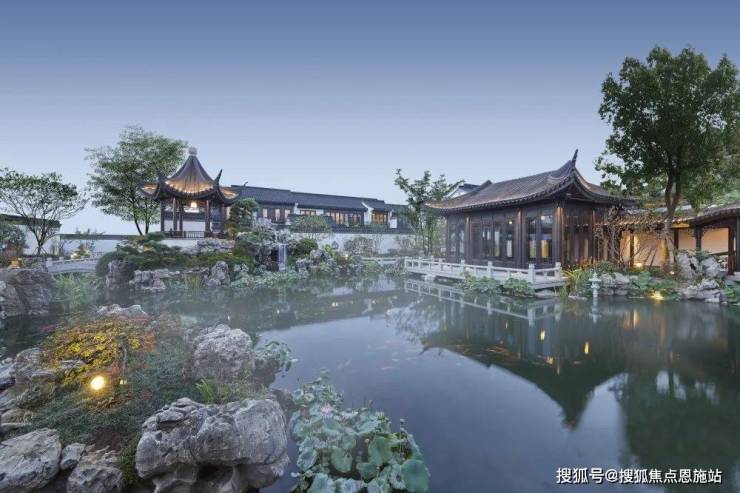 通过运用植栽及构筑物,不断细微地分隔、放大或转折空间,营造多层次的景观变化,同时花街铺地、飞檐戗角、花窗月洞……细节背后,秉承的是千年国风匠艺,取法极致,至臻完美。