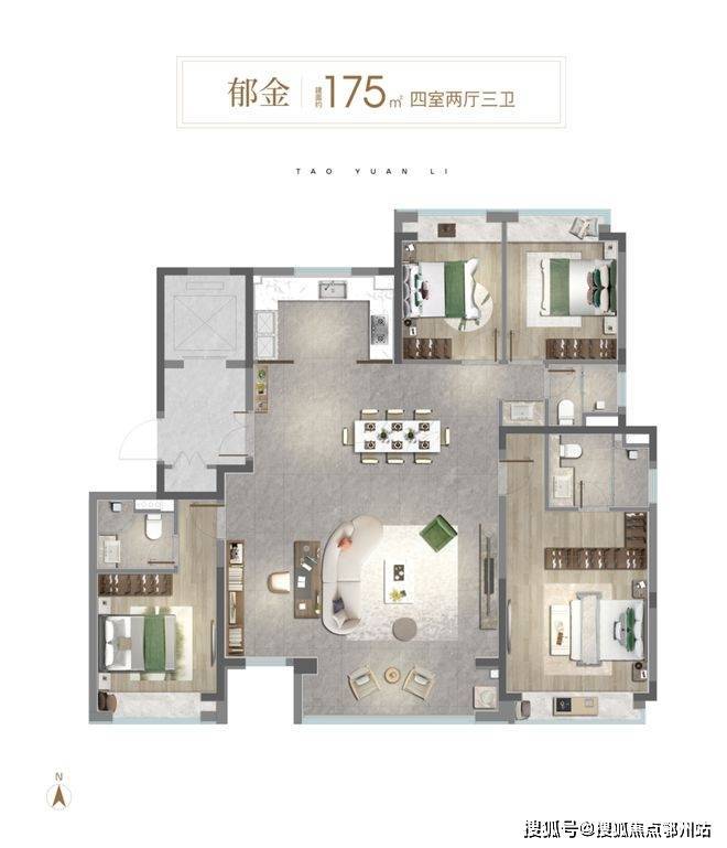 主力户型建面约105㎡3房、165㎡4房