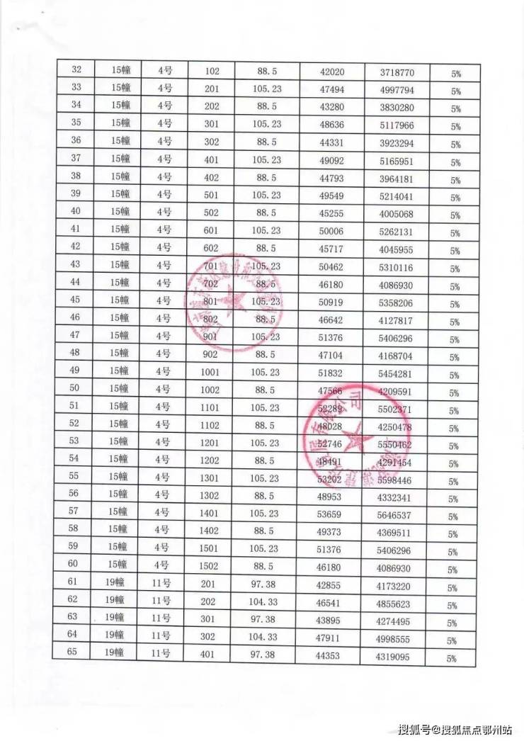 一房一价表: