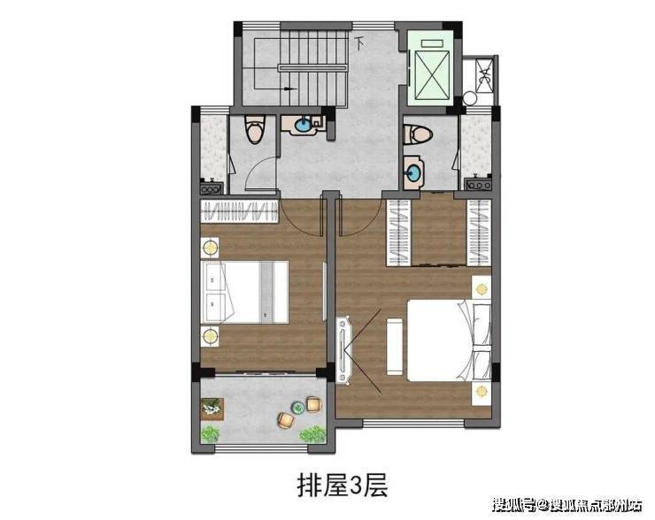 二楼、三楼双卧布局 ,其中最大的房间不仅拥有大面积玻璃窗以及独立卫生间、衣帽间,而且次卧还自带景观阳台,大尺度给足了住户安全感和舒适度,每一个房间抬眼即景,饱览四季风情。