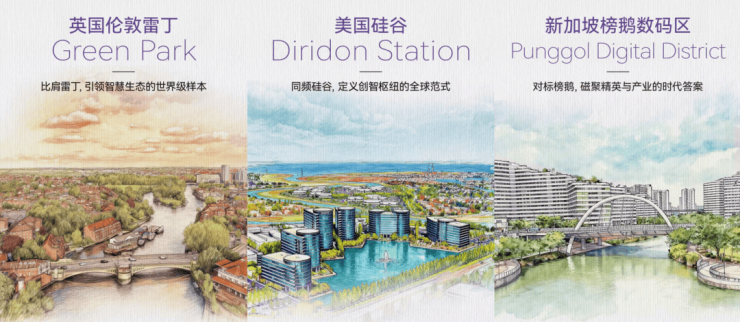 深度对标世界三大标杆区域——借鉴 英国雷丁的“ 公园式创新极核”理念,融合 美国硅谷Diridon站域的“ 创智枢纽”模式,呼应 新加坡榜鹅数码区“ 产学研协同”的人才生态。将