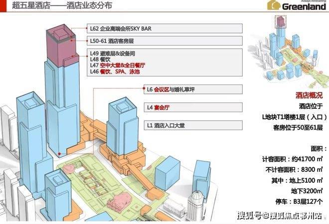 复合业态:约46万方超高层企业总部办公楼,约17万方大型商业中心,约4.2万方丽思卡尔顿酒店,约12万方高端住宅,