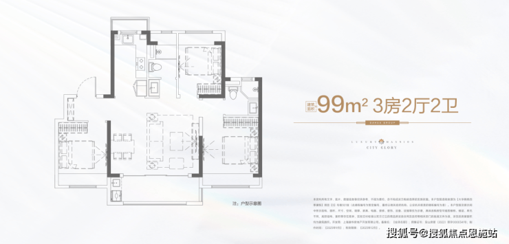约99㎡3房2卫设计,有着 约5.1米的大横厅设计。