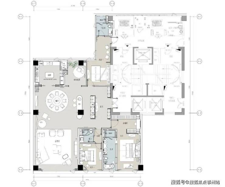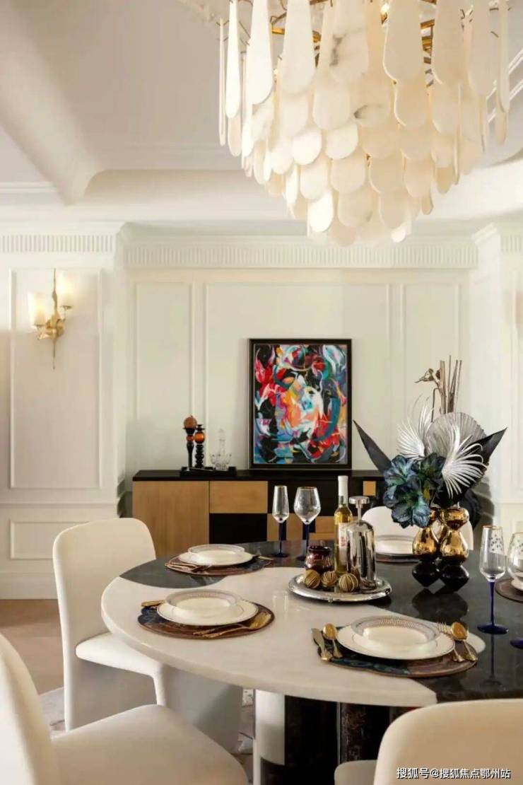 中间套的客餐厅更是达到约100㎡ ,一张12人的大圆桌也有充足的空间优雅转身。周末约上好友来聚会,给主人赚够了颜面。