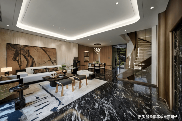 尊崇仪式 从容归家:以现代东方、雅致奢美为主调,营造酒店大堂式体验仪式感,融汇东方对称美学,打造截然不同城市秘境。