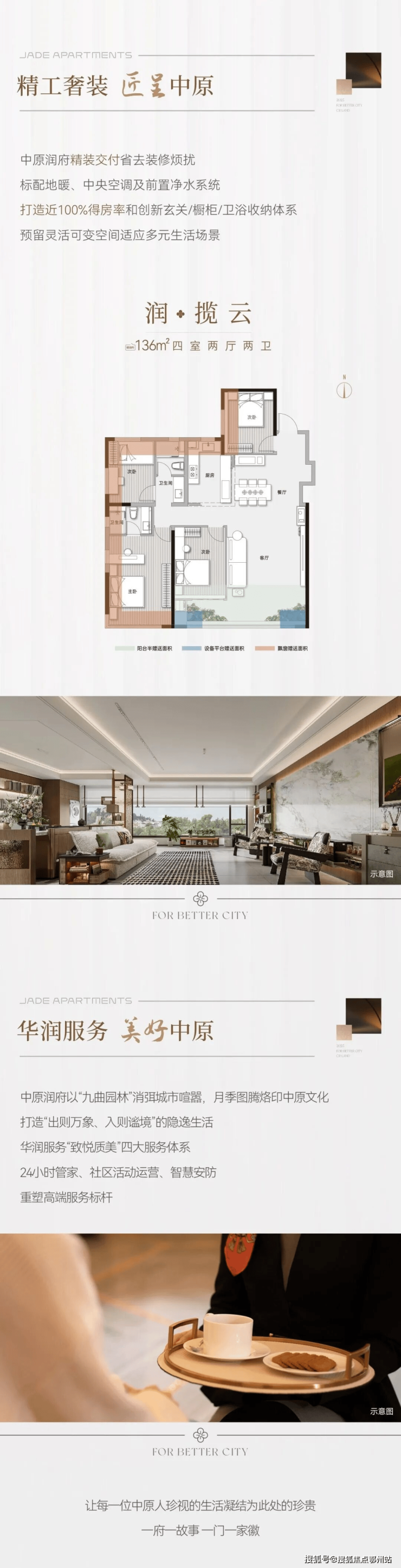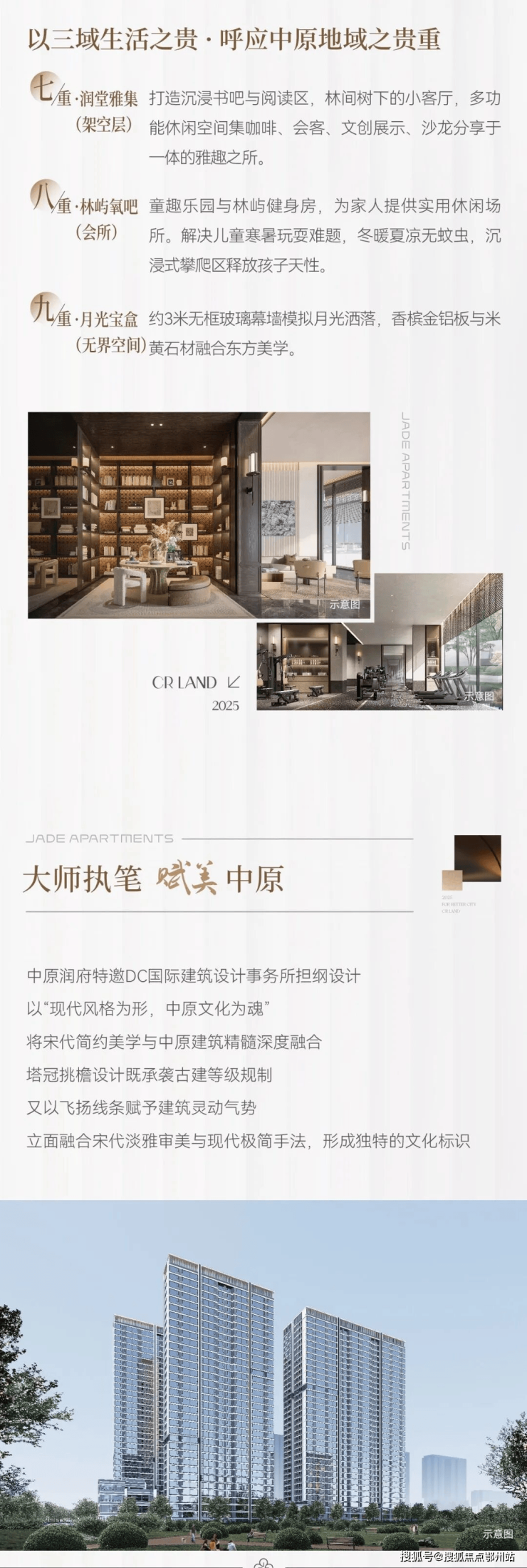 当“好房子”成为行业共识,当“安全、舒适、绿色、智慧”成为发展方向。华润置地积极回应国家好房子策略,推出“三好十二优”好房子建设标准,中原润府项目更是请来国内顶流设计团队世尊+LSD联手操刀,对标一线豪宅水准: