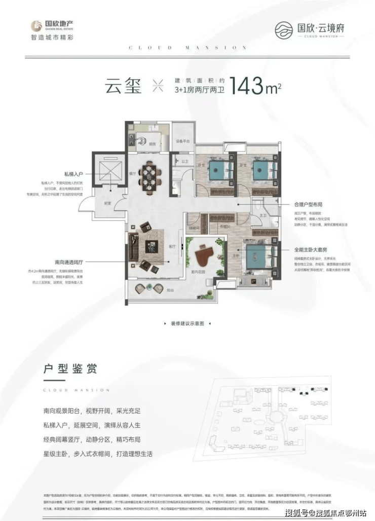 2#、6#、9#主推110平(三房)、143平(四房),2梯3户品质大宅