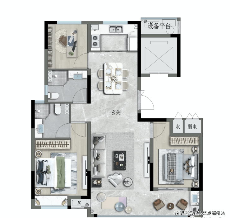 四叶草方正户型,主卧、南次卧与客厅三开间朝南,南向高效采光面,容纳更多阳光,打造更有温度的家,让清晨的第一缕阳光唤醒一天的理想的生活!