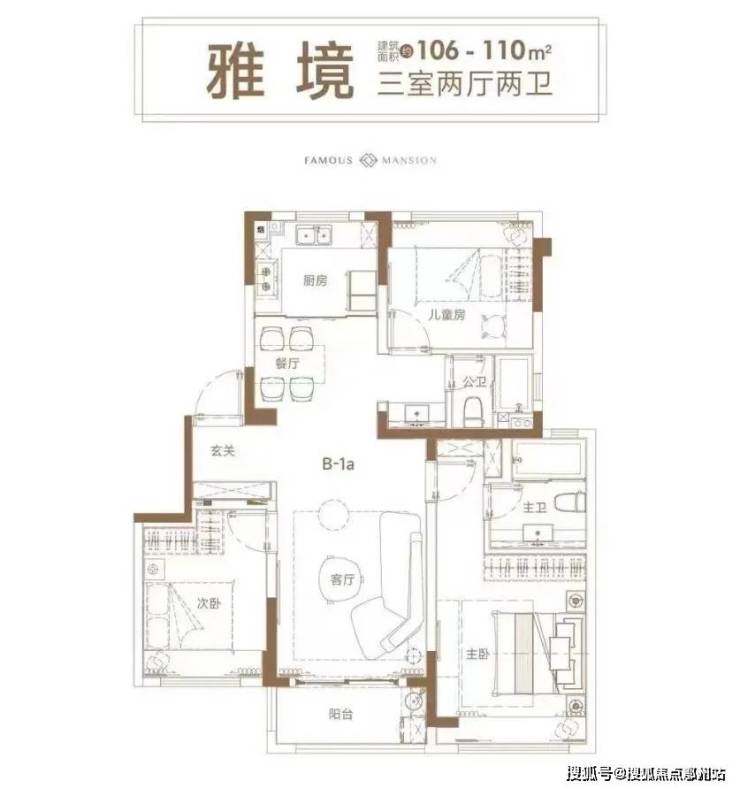 此外,项目还有建面约106-110㎡三房可供选择,户型图如下↓