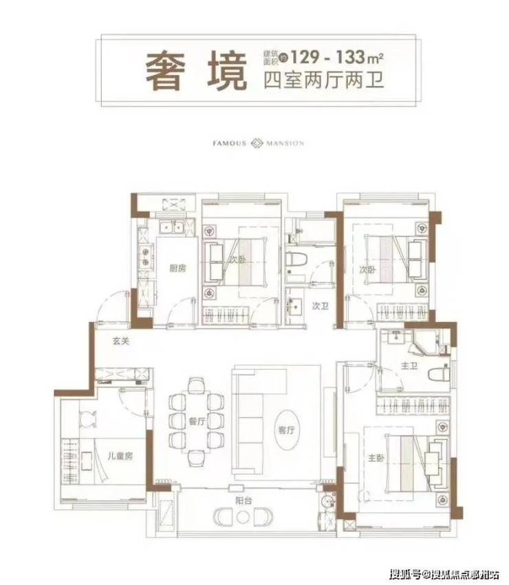 建面约129㎡四房,则是改善置业的优选