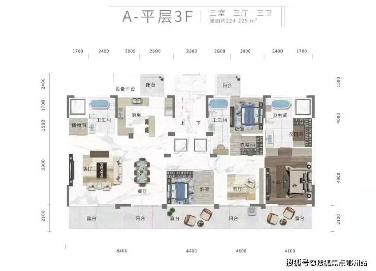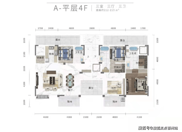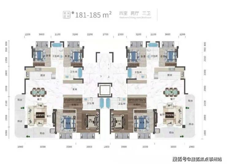 平层还有 建面约213㎡/225㎡三室三厅三卫约185㎡/220㎡四室两厅三卫,皆为豪宅尺度。