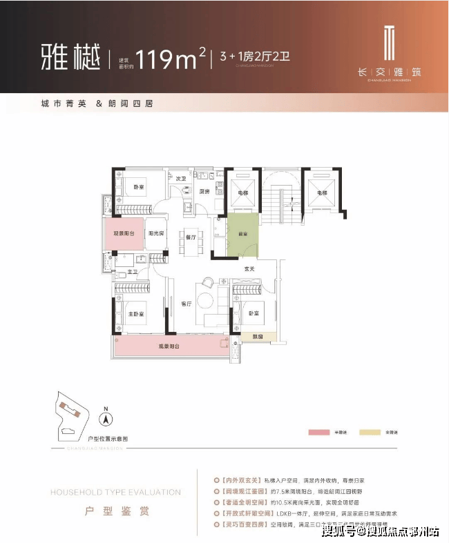 全屋四飘窗+双阳台+电梯前室,实得面积可与市面上160㎡大平层相媲美。