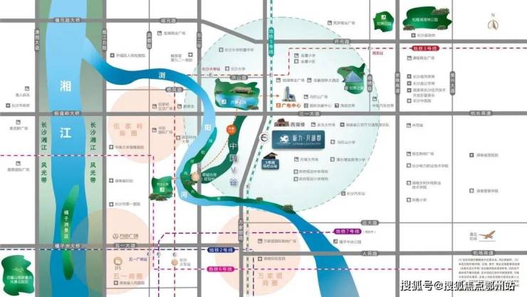①双主干道:东西主干道三一大道、南北主干道万家丽路与月湖郡项目处交汇。