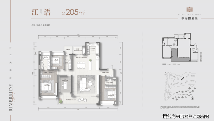 高定大师空间,国际大牌奢装巨幕瞰江面,融入高级定制的艺术精髓,用尺度重塑空间尊崇感与私密性。加持斯麦格,威乃达,唯宝,大金,铂浪高,汉斯格雅等国际精装品牌,著立封江大平层的高定范本。 户型方面,中海閲湘臺首开三款大平层户型:约205㎡、276㎡、335㎡。