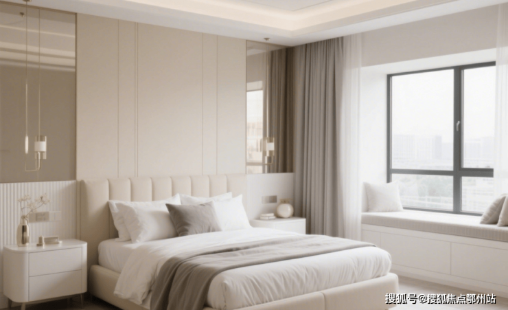 动静分区,主卧套房设计,不仅 私享独立卫浴、全景飘窗,更配置步入式衣帽间,将私密尊崇感拉满。