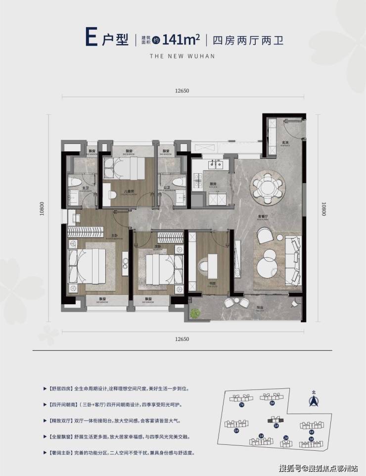 建面约108m²-141㎡改善住品:以更舒展的生活空间,满足首次改善、二次改善客户的居住需求。