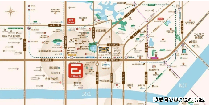 金辉江樾云著位于东西湖区临空港大道与革新大道交汇处,该片区属于吴家山老城区周边,附近配套比较完善。售楼部地址在 地铁1号线五环大道站A出口前行100米。