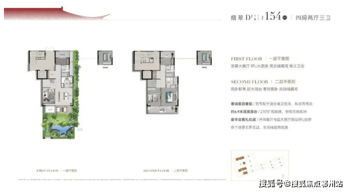 第四,纯粹低密唐风院墅区、前后大露台、独门独户私家花园的天地院墅。