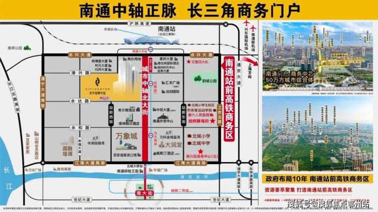 这个项目叫东升旭辉中心,占位南通站前商务区,一个体量约50万方、包含八大业态的“超级地产项目”。