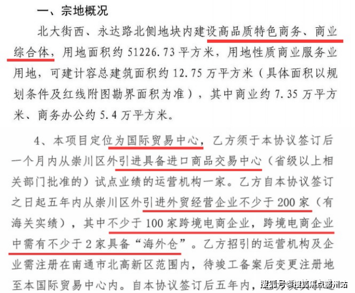 从地块出让开始,它就刻画着市北未来南通站前商务区“门户级商业枢纽”的模样 :“高品质特色商务、商业综合体”“国际贸易中心”“引进外贸经营企业不少于200家”“不少于100家跨境电商企业”……