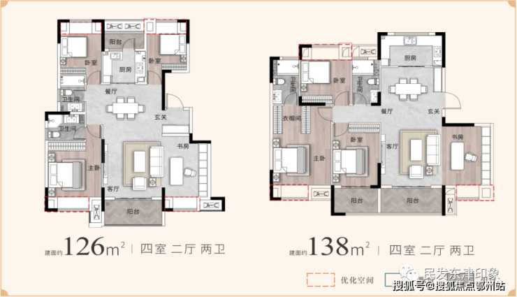 项目全系标配全景落地窗,首推126㎡经典四叶草户型,配置约60㎡游艇式会客厅,实得面积高达93%。让每一寸空间物尽其用。138㎡奢阔3+1横厅,可满足从二人世界,到四代同堂的多样化居住需求。