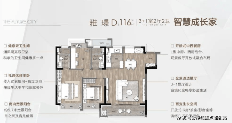 雅 璟 | D户型 | 建筑面积约116㎡ | 3+1室两厅两卫