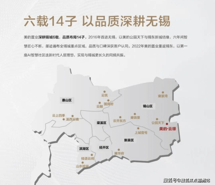 美的置业深耕无锡6载,品质布局14子,收获约9000户业主信赖和赞誉。2016年首进无锡,以美的公园天下开篇,六年间智慧匠心不断,屡迹遍布全锡城重点区域,品质与口碑深获客户认同。