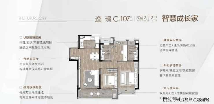 逸 璟 | C户型 | 建筑面积约107㎡ | 三室两厅两卫