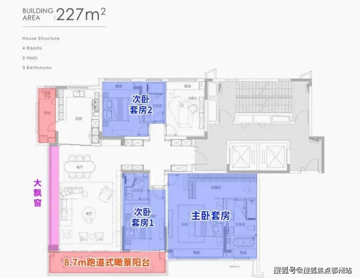 在182㎡的基础上更进一步,同样双阳台+双套房,主卧豪华套间。