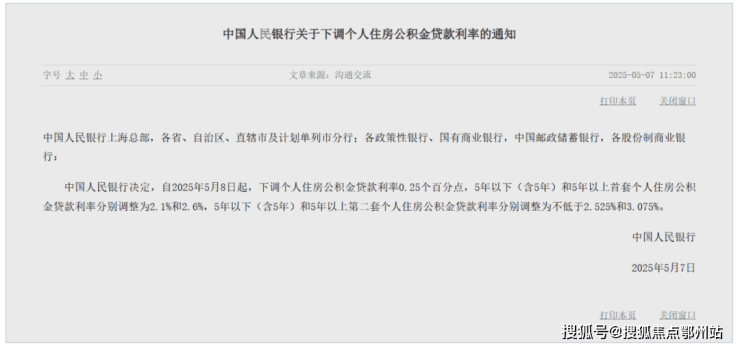 5月7日,在国新办举行的新闻发布会上,中国人民银行行长潘功胜宣布, 将下调个人住房公积金贷款利率0.25个百分点 。这意味着首套房5年以上公积金利率将降至2.6%,月供立省数百元!