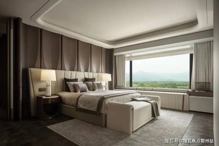 奢阔面积的套房主卧,演绎空间精奢美学的优雅形态,大视野瞰景飘窗,将自然美景一览无余,让阳光与清风肆意流淌。