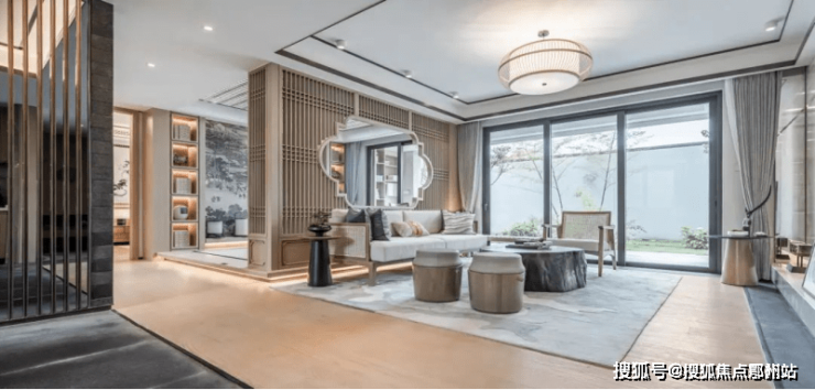 星空顶车库,配置专属定制水纹造型灯孔结合中式窗花元素。 一眼看上去恍若漫天繁星,彰显出业主尊贵的身份感与仪式感。