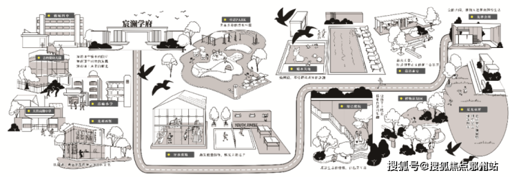 社区内规划滨水休闲带,形成北动南秀的双公园景观,以全龄交互体验,规划十大森活秀场。