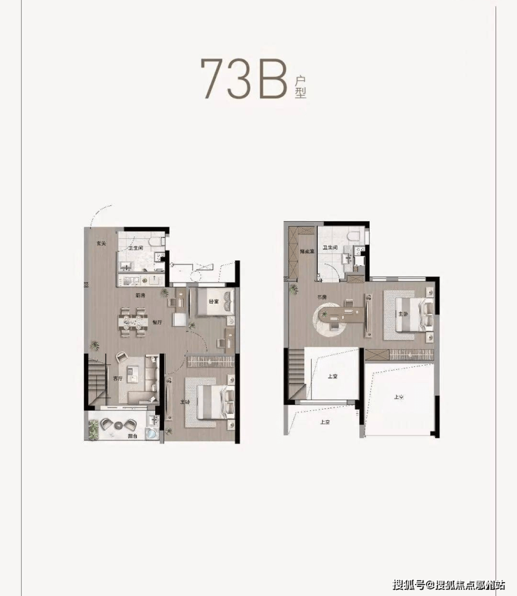 当代精工筑品 全系美好户型主力建面约69-89㎡美好滨水知识社区,建面约73㎡上下双层LOFT户型,空间开敞,餐客双厅、入户玄关、卫浴间、书房一应俱全,成就时代精英优雅生活场境。