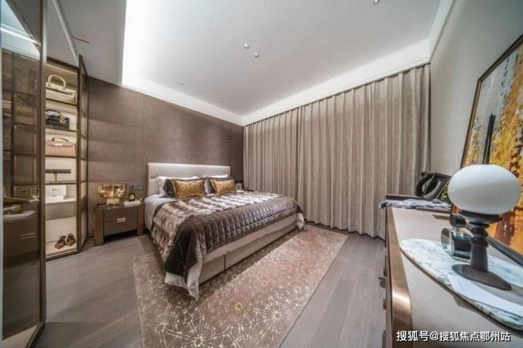 在大平层户型中最容易被忽视的 主卧套房的格局,设计上更是给足了尺度 ,再加上转角窗的设计。