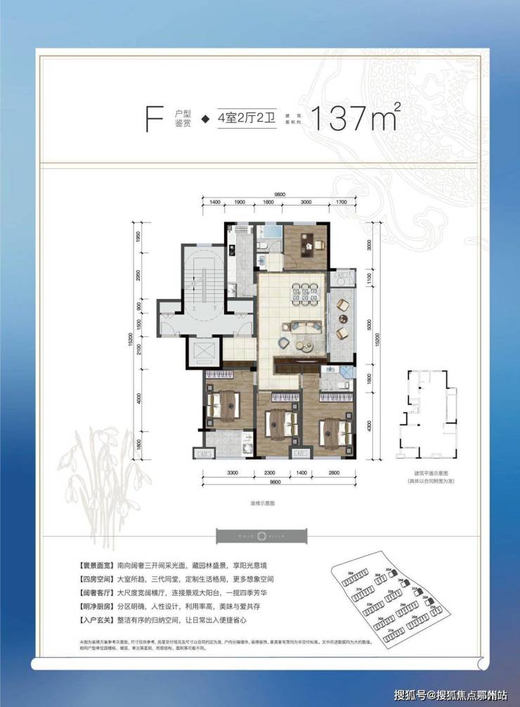 构建“一环两轴”多重景观点的园林体系。建筑面积约88-137㎡以阔绰舒展的空间,全维提升生活舒适度。