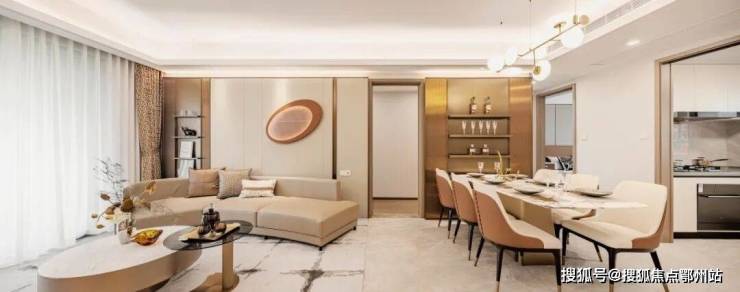 一体化餐客通厅,连接盛景阳台,闲暇时,孩子在客厅弹奏钢琴,父母在厨房准备晚餐、老人在阳台莳花弄草,置身不同空间,家人却可以视线相交、亲密交谈。