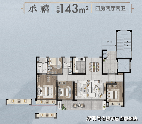 四房空间布局,满足了二胎家庭、三代同堂居住所需,还可以开辟独立书房,作为学习、工作等谧境场所。