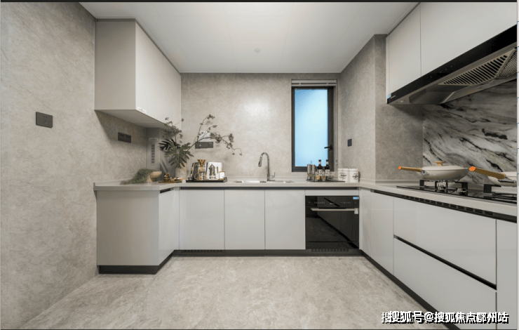 U型厨房,提前预留双开门冰箱位置的情况下,也可以容纳多人在里面操作,空间阔绰且利用率高。
