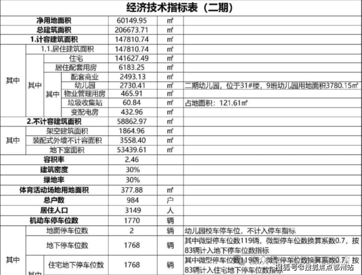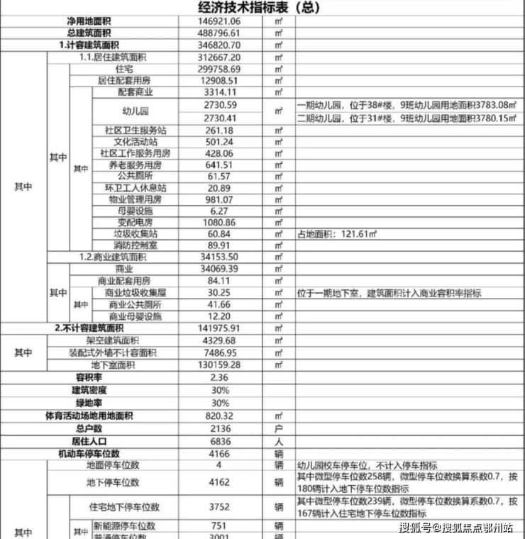 1.项目占地约14.7万方,总建筑约48.9万方,容积率2.36.项目分两期建设. 总户数2136户.车位配比1:2.