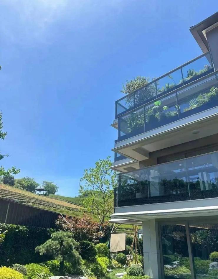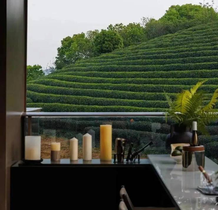 项目西侧和北侧茶山环抱,推窗见景。东侧远景亦是茶山景观,无建筑遮挡。满目翠绿的茶园推窗尽收眼底,让居住者仿佛置身于山水画中。