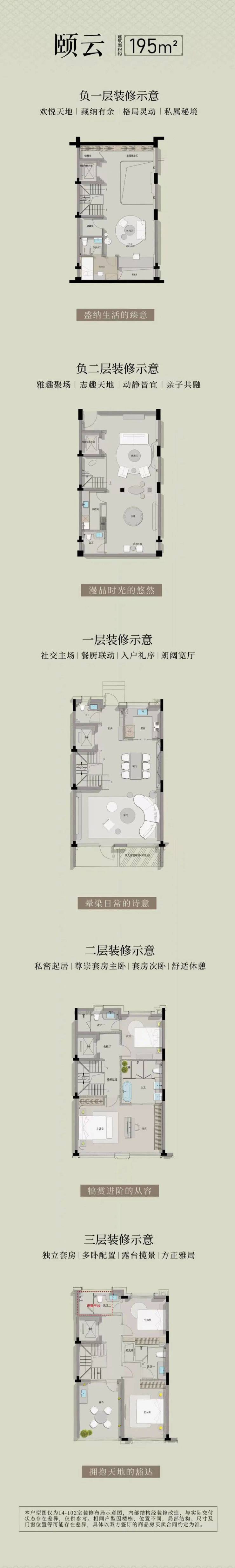 195㎡中间套:主打 “紧凑实用型院墅”,一层带阔南向私家庭院,推门即见绿植;地上三层空间功能分区清晰,三层预留专属露台,可打造观景或休闲角落;地下空间层高 5.8 米,支持灵活拓展为两层,配备双采光井,有效改善地下阴暗问题,避免传统地下室潮湿弊端。