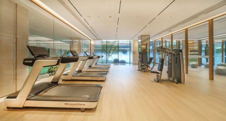 另一座则是与自然景观融为一体的露天泳池,在松林剧场与叠石流水的环抱中,畅游仿佛置身于自然山水画卷。毗邻泳池的,是投入近百万、全套采用全球十大高端品牌史蒂飞的健身房,从跑步机到龙门架,专业级的器械满足从基础锻炼到深度塑形的全方位需求,一旁的瑜伽室则提供了静心冥想的静谧空间。
